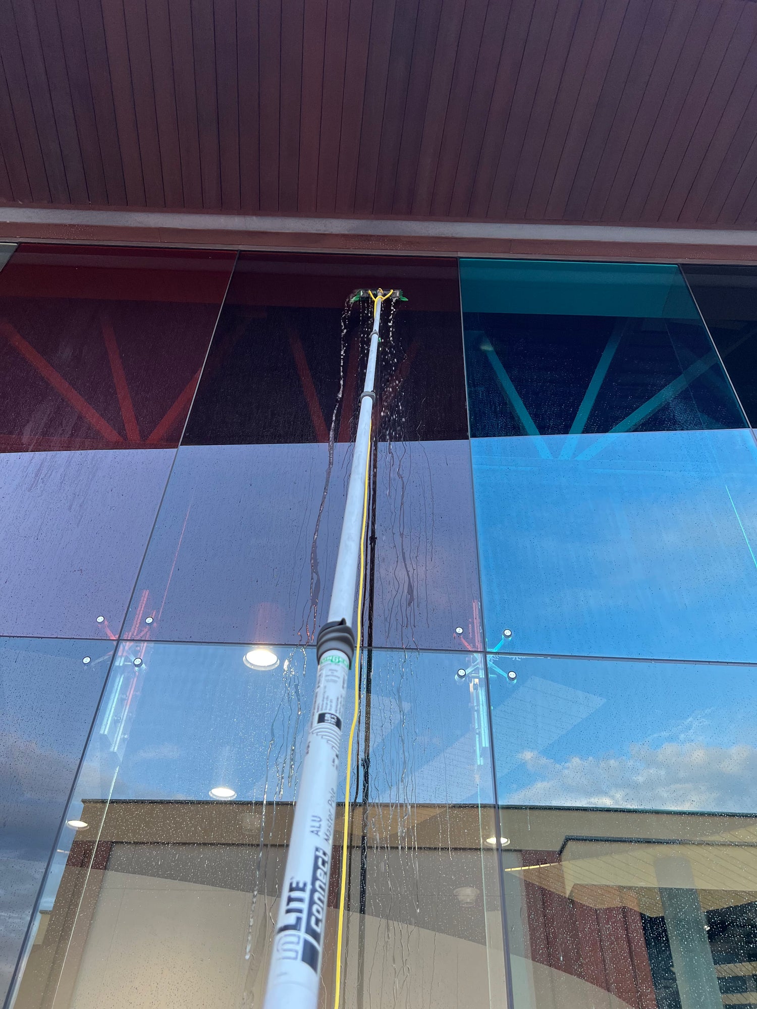 Just Too Clean offers window cleaning up to 25 feet tall using our specialized equipment. If your business has lots of windows, especially in spaces that are seen by the public, we definitely recommend getting your windows professionally cleaned.